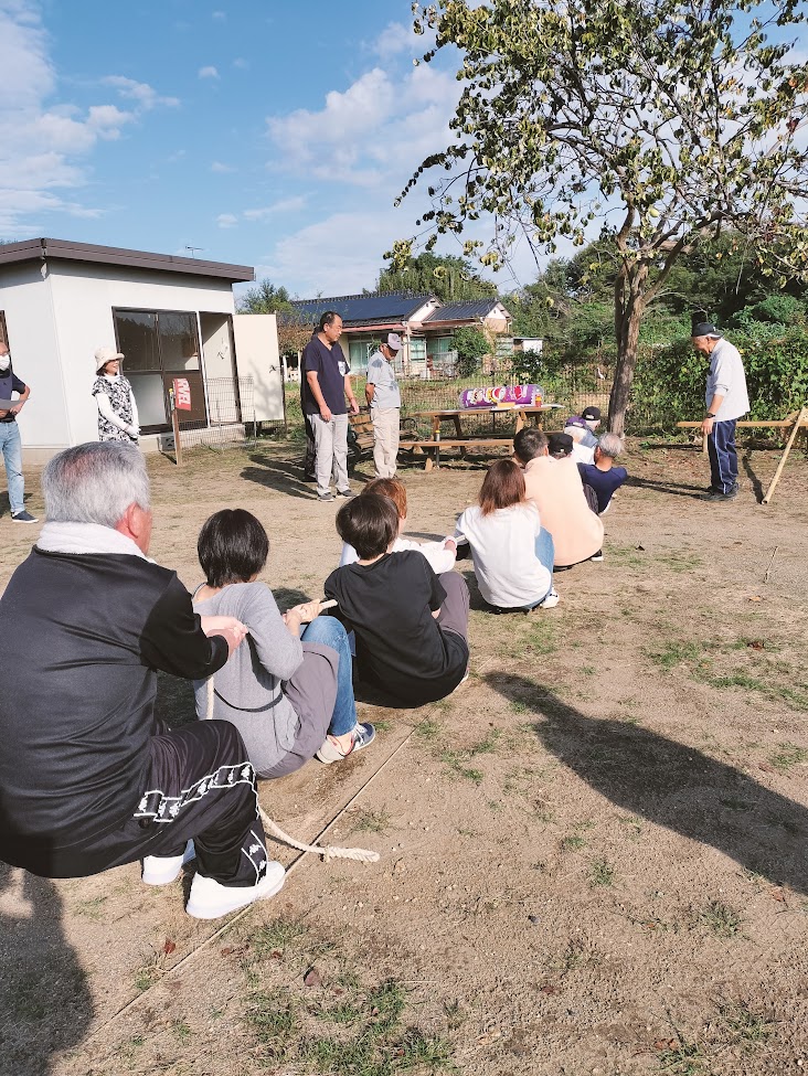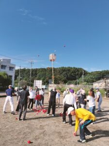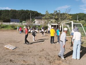 日記 2025年10月9日 市民運動会に向けて 市民運動会の地区対抗は昨年も我12区が優勝。今年も連勝を目指して、出場選手はちびっ子広場に集まり練習しました。自分は輪投げに出場です。本番1週間前の土&日曜の8時~30分程度だけど。活気ある笑顔は、地域の繋がりに一役も二役にも・・・。2025/010/04 綱引き(木は丈夫だ) 輪投げ ゲートにボール 玉入れ