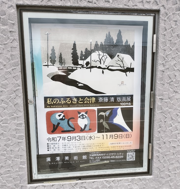 「私のふるさと会津」と題した斎藤清 版画展を観に出かけた。場所は筑西市にあるザ・ヒロサワ・シティ美術館です。なんと広い敷地内には庭園の他、黄金の茶道具、つくは野館、人間国宝館、芸術の森分館、交流会館、茨城工芸会展示館、石の美術館、歴史館なども見られるんだ。今回は斎藤清 版画100点もの作品を、じっくりと観賞することができましたね・・・。2025/10/04