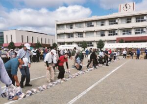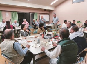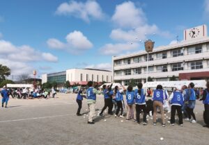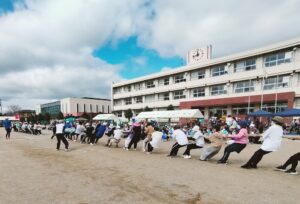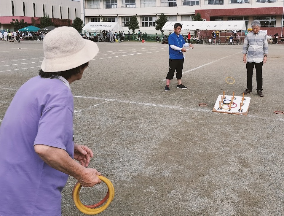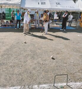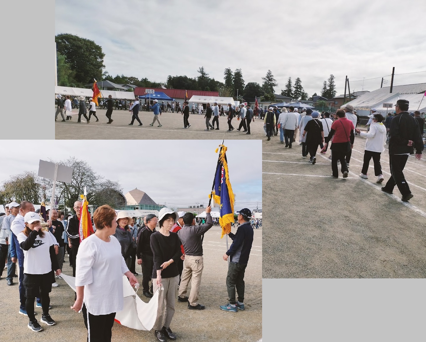 日記 2025年10月21日 市民運動会参加 前日の大雨も上がって秋晴れの下で行われ、地区対抗は12区中6位に終わりました。連勝はならず、それは自分が綱を引かず、輪投げで足を引っ張ったからか! 午前中で競技終了、お弁当をいただいて解散。夕方からは集会所で反省会を、我が子の運動会風景を思い出しました・・・。2025/10/12 入場行進(優勝旗返還) ふたりの輪 ゲートにゴボール 紅白玉入 輪投げに出場 高齢者玉手袋 ペア棒ーリレー おったまげたレース つな引き 夕焼け(集会所へは済生会病院を通ると近道) 反省会