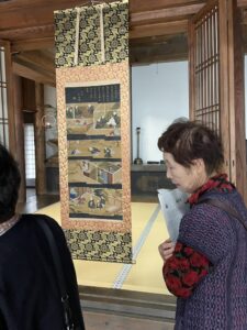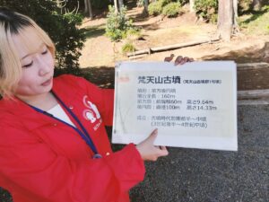日記 2025年10月25日 集中曝涼(古墳) 香仙寺から南に進むと古墳が点在している。梵天山古墳は宝金剛院の裏側に全長約151mの前方後円墳があった。集中曝涼ボランティアの案内を聞きながら回る。さらに隣の星神社古墳へ。此方はやや小さめ。林にはどんぐり沢山落ちていた。最後に沈石寺(ちんせきじ)に寄った・・・。2025/10/25 石段を登って宝金剛院へ 境内に聖観世音菩薩が 梵天山古墳の説明を聞く 掘窟跡がいくつもあった 古墳の頂きへ 星神社古墳の説明を聞く 古墳から掘窟した一部 古い墓石が 神社からの眺め 枕石寺親鸞謂れの掛け軸 親鸞聖人が枕にされた石