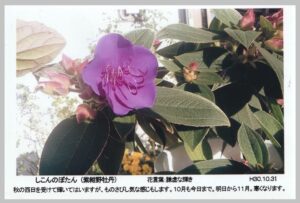 しこんのぼたん(紫紺野牡丹) 花言葉:謙虚な耀き H30.10.31