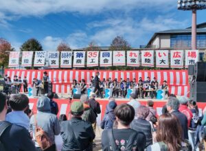日記 2025年11月6日 ふるさと祭りおおみやへ 恒例の「ふれあい広場」が開催された。早い時間にもかかわらず各工業団地駐車場は満車が続出、家族連れで賑わっていた。セレモニーから郷土色豊かな競演、模擬店、子どものコーナー、抽選会・・・、大宮地域総出のビックイベントですね。2025/11/03 ふれあい広場 長~い滑り台 会場広場 並ぶふわふわランド ステージは水戸工バンド 上棟式 神輿連合会 フィールドステージ 水戸黄門登場 屋台に並ぶ人・人 煮いかの匂いが堪らなくて 友好都市大館で