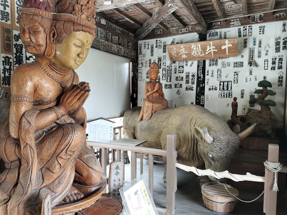 日記 2025年12月8日 野坂寺へ 札所巡りは市街に近づいてきた。札所12番仏道山野坂寺に着くと重厚な雰囲気の山門が目に入り、山門をくぐると、手入れのいき届いた庭の向こうに美しい本堂が見える。本尊の聖観世音菩薩をはじめ、十牛観音や十三仏尊像などの多くの仏像や、閻魔大王、風神、雷神、雨神などの木像も安置しており、見応えがあった・・・。2025/11/23 西武鉄道遮断機 野坂寺山門 十牛観音 野坂寺本尊 十三尊仏像 御朱印を頂く 弁財天とおそうじ小僧 野坂寺御朱印