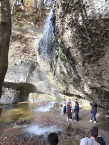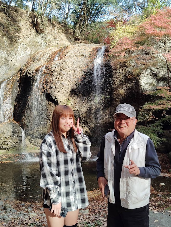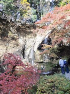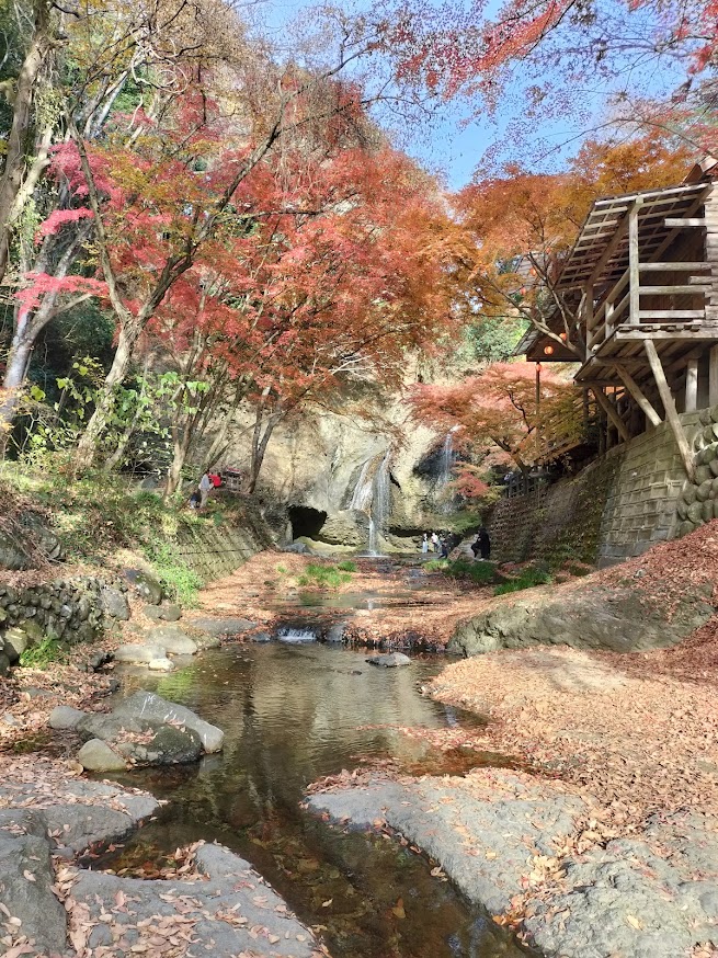日記 2025年12月14日 紅葉の月待の滝 那須の彼氏が『常陸秋そばを食べたい』とやってきた。早速、つけけんちんそばを味わった後、大子方面へドライブ。前回袋田の滝だったから、その先の月待の滝へ行くことに。別名裏見の滝ともいい、水に濡れることなく裏滝に入れるんです。それにしても紅葉がきれい過ぎ、家族連れや若者たちの多くが訪れていた・・・。2025/11/24 常陸秋そば 月待の滝へ 滝が見えてきた もみじ苑 月待の滝 滝の裏側に 意気投合⁉
