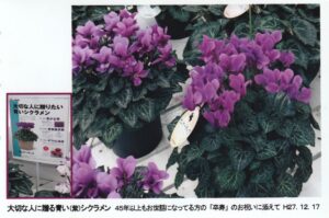 大切な人に贈る青い(紫)シクラメン 45年以上もお世話になってる方の「卒寿」のお祝いに添えて H27.12.17