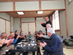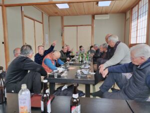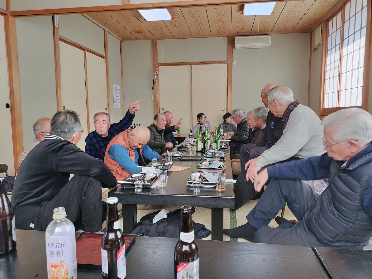 日記 2025年12月27日 恒齢の忘年会 今年も、親和会(老人会・グラウンドゴルフ)の忘年会に出席しました。場所は町内催時いつも弁当を提供してくれる「湊屋」です。料理は弁当詰めで美味しく頂くが、豪華さはなかったね、会費1,000円ではね。皆さん話好き、大勢だから、あちこちから話題が錯綜してましたね~。昼間から赤い顔して帰宅でした・・・。2025/12/18 湊屋 カンパーイ 宴たけなわ? 日本酒はいつもの北秋田と越後桜 お開き
