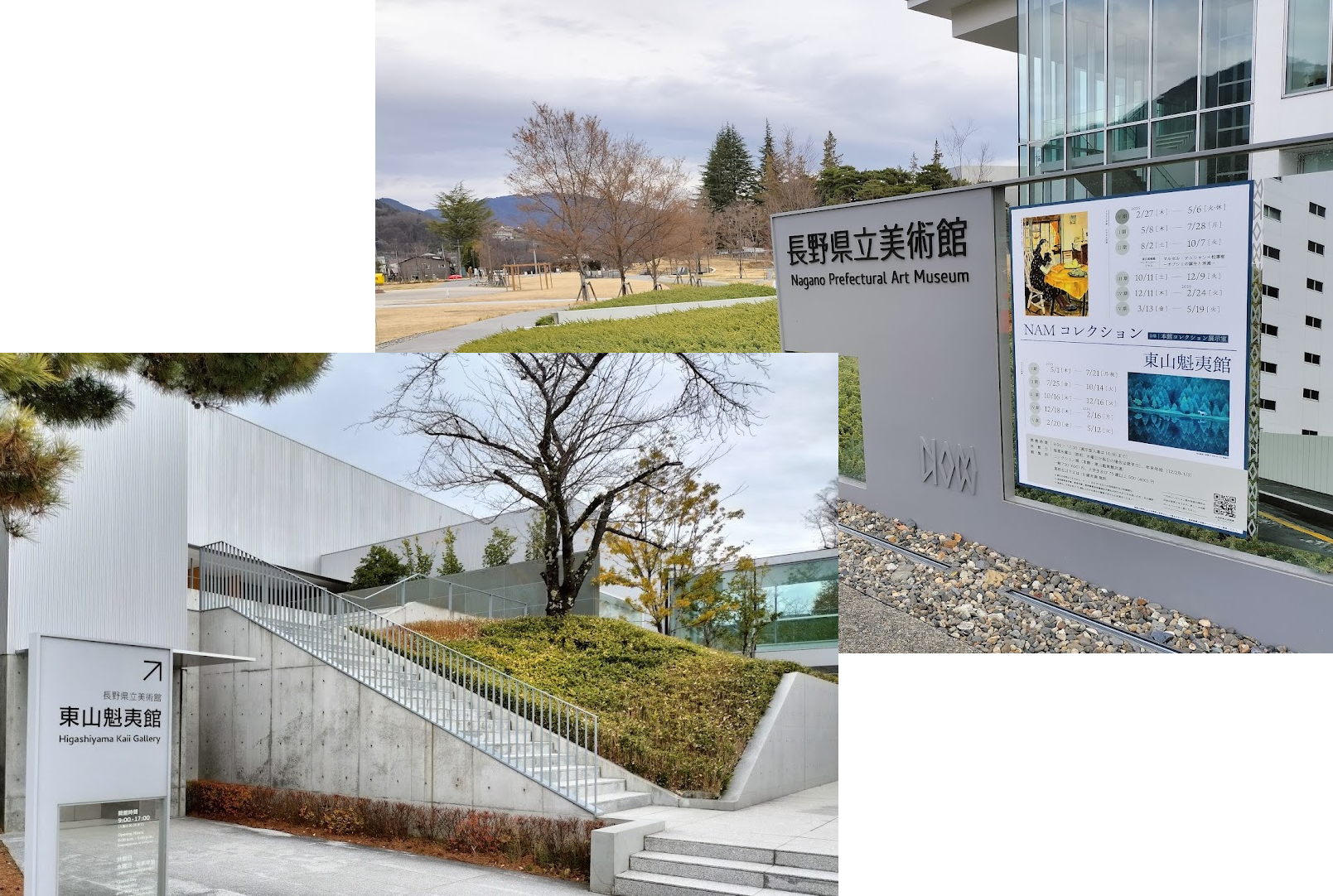 日記 2026年1月10日 美術館-善光寺 善光寺東隣にある長野県立の美術館。旧信濃美術館から全面改築したという、自然と調和した近代的な景観を持つ建物です。東山魁夷館は別棟で繋がっていた。旅友さんとは別に一人でゆっくりと回ったのです・・・。2025/12/22 長野県立美術館へ 館内へ 展示室 東山魁夷 「道」「白い馬の見える風景」などスクリーンで解説 隣が善光寺だ 鐘楼 善光寺 仲見世通り 翌早朝のアイスバーンを超えて 赤城山(北関東道より)