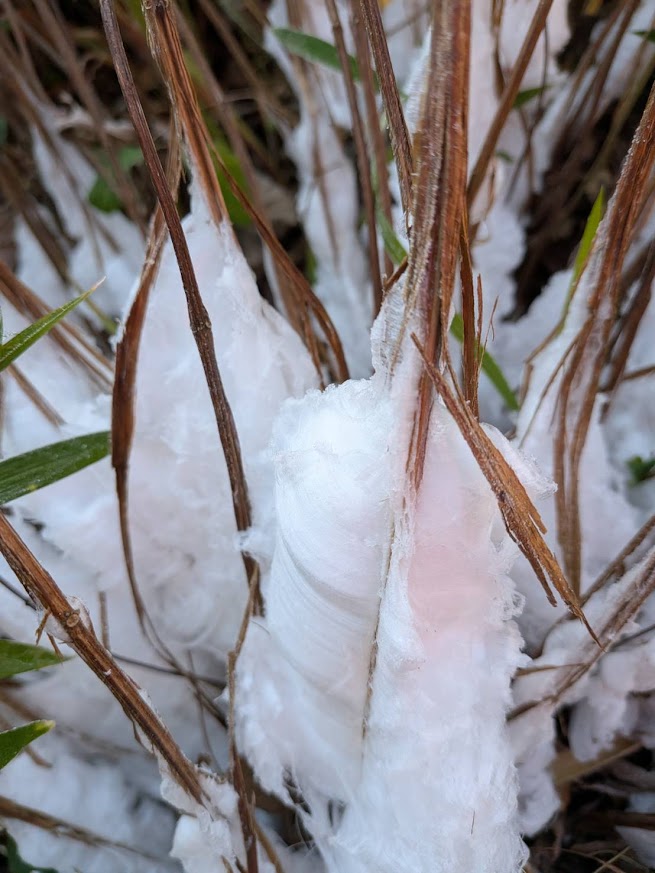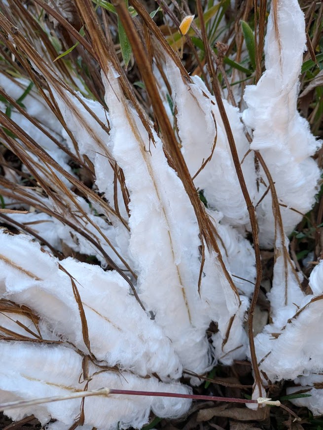日記 2026年1月14日 シモバシラ 「ひよっこ」のロケ地近くにある農家さんからシモバシラ(植物)を株分けしてもらったが、巧く氷の花を咲かすことができませんでした。場所による環境変化が影響するらしい。地面にできる霜柱とは違い、特定の植物の茎にできる繊細な形の氷で、その神秘的な姿が魅力ですね。今回も写真を撮らせて頂きました・・・。2023/01/04 シモバシラ まさに氷の妖精 氷の花 シソ科の多年生植物