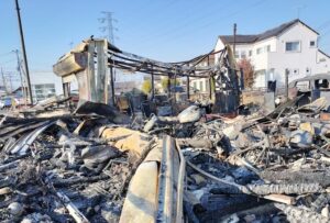 日記 2026年2月1日 バイク店が全焼 ひたちなか市の「バイクメイト石井」店で出火、全焼してしまった。ストーブから引火したらしい。30年も前からメンテや修理などで大変お世話になってた所だ。店長は軽い火傷で済んだらしいが、これからの後処理は一体どうなるんだろう・・・。2026/01/27 右は延焼したハンバーグ店 驚きの焼跡 バイク店内 バイクの残骸 途方にくれるオーナー