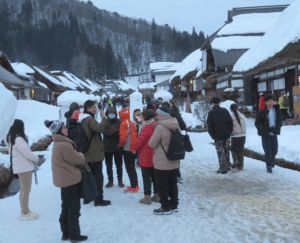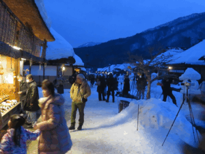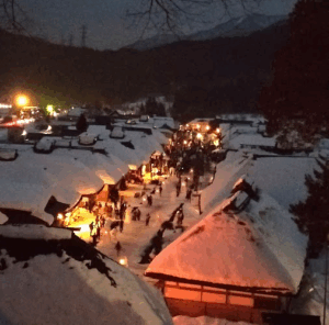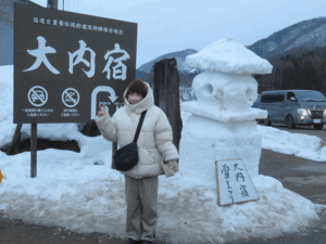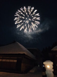 日記 2026年2月19日 大内宿雪まつり 茅葺き屋根に積もる雪も融け始め、街道もシャーベット気味で、昨年の大雪と比べ大分少なかった。大内宿は知名度あってか、外国語が飛び交っていたね。雪灯籠に明かりが灯ると、町並みは幻想的に変わる。人気イベントの花火が夜空を彩ると、冬の大内宿背景に観光客やカメラマンが盛んにシャッターを切っていた。今夜の車中泊は近くの湯野上温泉駅のPへ・・・。2026/02/14 大内宿入口で 掲示板 インバウンド多し 夕闇近づく 土産店 雪灯篭に灯が入った大内宿 打ち上げ花火