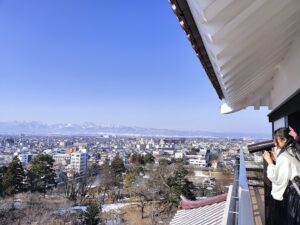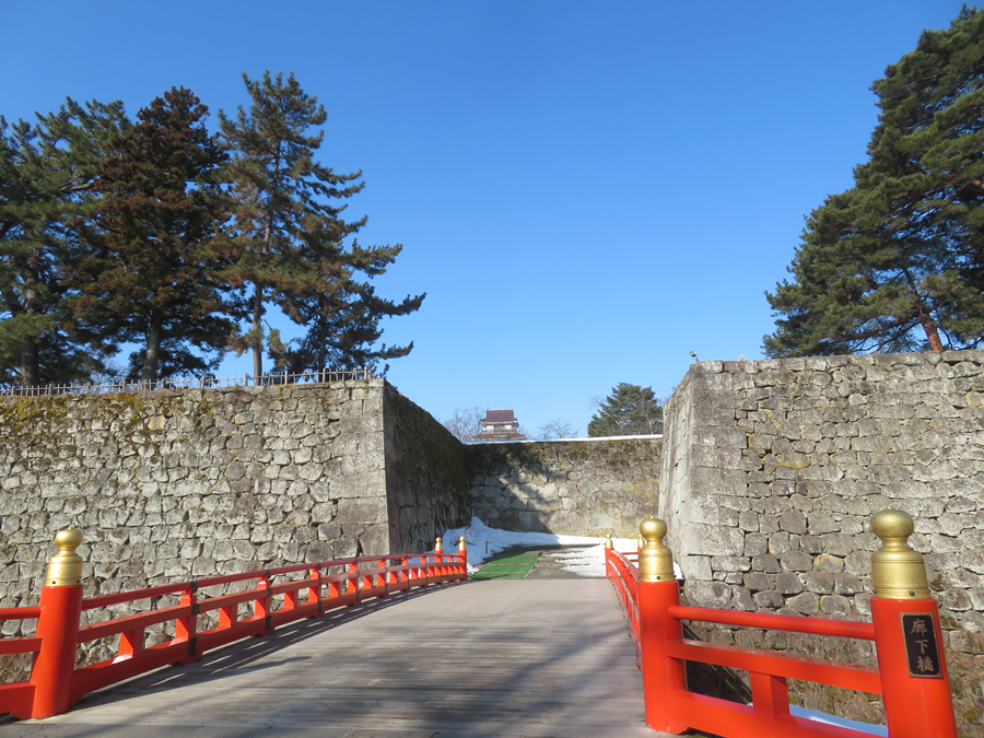 日記 2026年2月20日 会津若松城へ 早朝の湯野上温泉駅は冷え込んでいたが、足湯の湯気がほっこりと感じた。今日は会津若松城(鶴ヶ城とも)へ、人出はまばら絵ろうそくまつりは夜なんです。天守閣には雪はなく、白く覆われた城は撮れなかった。入城し天守最上階からの俯瞰は天気も良く最高だったね。茶室麟閣では茶を嗜んだ。そして午後は会津武家屋敷へ・・・。2026/02/15 湯野上温泉駅を1番列車が行く 足湯はあるが 廊下橋を渡って 城内へ 会津若松城 誤解してた城と天守閣 鉄砲狭間 天守最上階より 東方には磐梯山が 茶室麟閣
