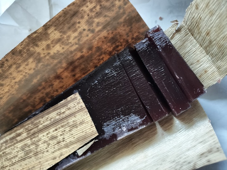 旅友さんのお勧め、直ぐ売り切れてしまうという日光にある幻の羊羹を求めて早朝出発した。暖簾も破け、ここお店? 中に入ると優しく女将さんがお出迎え。十勝産の大豆使用、ひと窯だけの炊き上げと。竹皮を開けると黒光りしている、奥深く優しい甘さ、添加物無、昔から続く羊羹本来の旨さに感動! 1本1650円だ・・・。2026/02/22