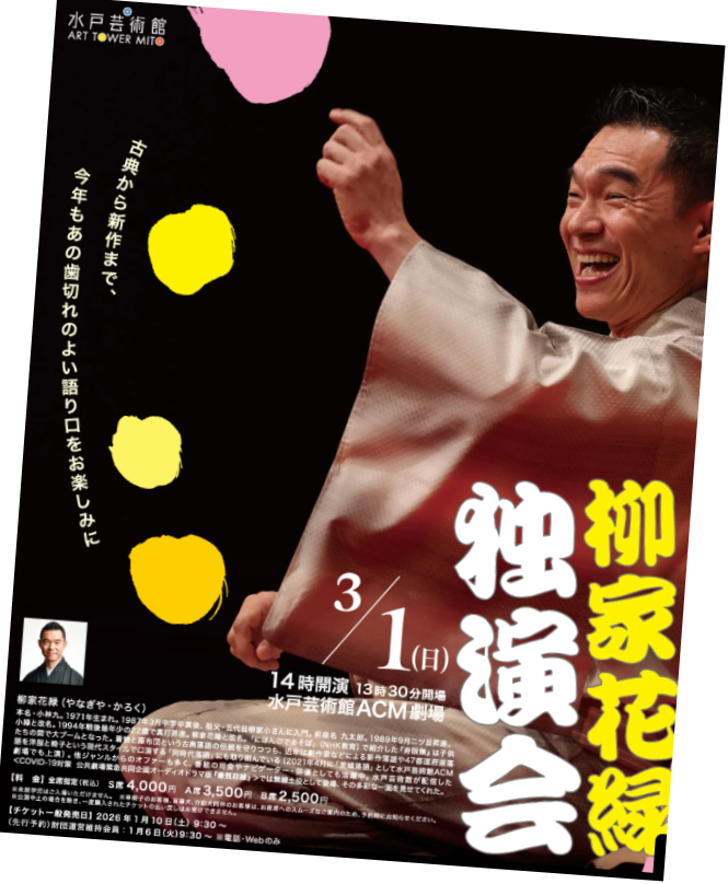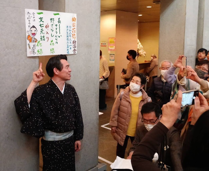 以前にも水戸の友人と一緒に水戸芸術館で落語を聴いた。今回は柳家家禄の独演会です。古典から新作まで歯切れのよい口調がファンを魅了しますね。講座が終わった後、ファンとの交流、写真撮影OKだった・・・。2026/03/01