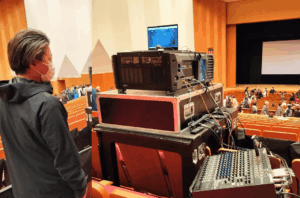 シネマプロジェクターを操作する映写技師