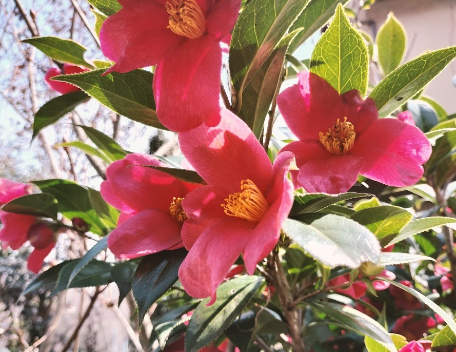 日記 2026年3月26日 鳥媒花 わが家の垣根周りに椿が咲いています。先日ヒヨドリがホバリングしながら花から花へと蜜を吸っていましたね。冬は昆虫が少なくヒヨドリが花粉を付け受粉を助けているんだ。人の気配を感じると直ぐ逃げちゃうから写真撮れないよね~。困ったことがただ一つ、車に糞を落とすことなんです・・・。2026/03/23 花から花へと ムクドリが 椿(ピンク) 椿(赤) 蕾 椿(白) 椿(八重)