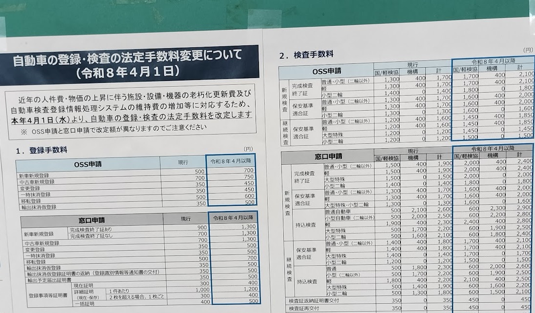 年度末3月の車検場は混んでいた。自動車整備工場のバイトで窓口業務手続に行きます。車検(継続)を主に登録、抹消、名義変更などいろいろ。混む理由は年度末決算に合わせて新車購入が多く、次期車検も年度末になる、及び5月の納税通知は来ない。なんと4月から法定手数料がまた値上げになる、のも一因だ。それにしても納付税は多過ぎますよね・・・。2026/03/31