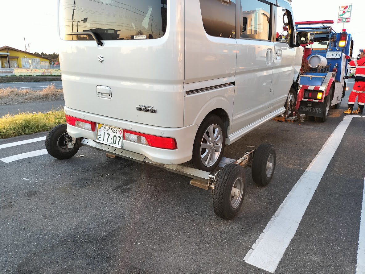 日記 2026年4月14日 事故 片側2車線の交差点で起きた。右折しようとしたところ、直進して来る車の側面に当ててしまった。こちらの前方不注意ですね。相手は年配のご夫婦、お互いケガはありませんでした。対物保険で処理も、車両保険は入ってないので自車の修理は実費です。GW明けまで入院ですね・・・。2026/04/08 長砂交差点で 相手の車 自分の車 JAFにてレッカー移動(無料)